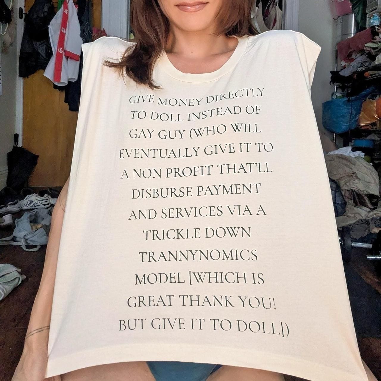 * Designer Gogo Graham’s “Protect the Dolls” rebuttal shirt ($50) is sold out online, but there are still a few IRL at Charlot Abhors a Void in Chinatown (244 Canal Street, #3R).