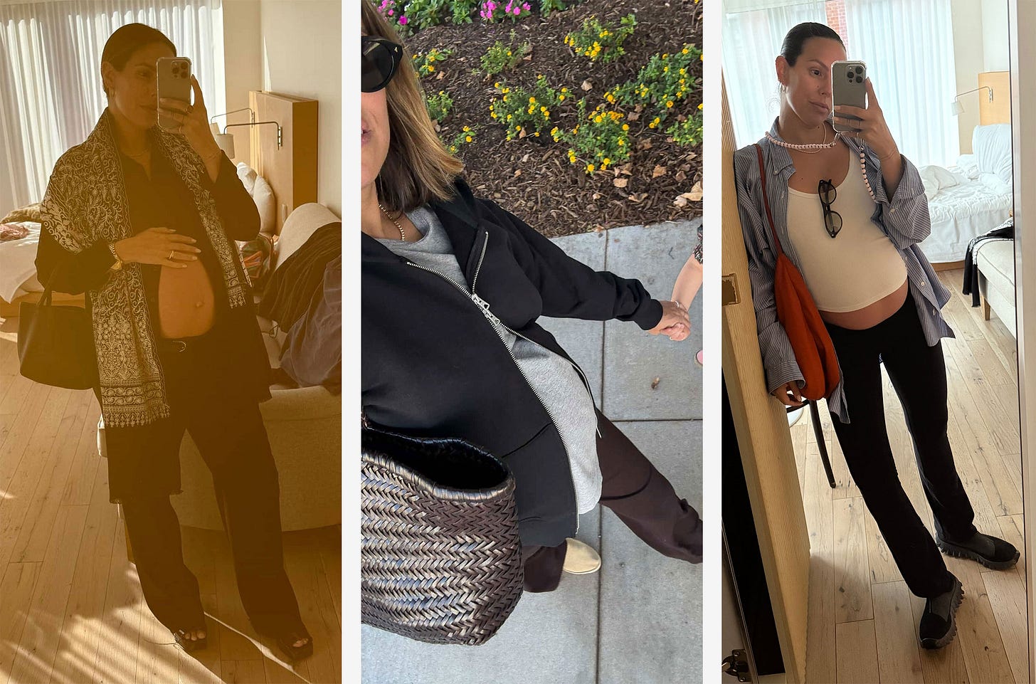 Winnie mostly wore basics from Australian brand Bae and Swedish brand Boob (both well made) when she was pregnant three years ago, along with elastic-waist Cordera and Pleats Please pants. We also reached out to stylist Alex Violante, who’s currently pregnant with her second kid: “I have never bought maternity clothes; I only buy things I will wear afterward, and if they become too big, take in the waist. This pregnancy, I have worn a ton of Donni: the pop pant, the baby rib scallop pant, and the silk pant. So comfortable and you can actually buy your normal size and wear them under your belly. I’m much bigger this pregnancy than my last, so jeans, even unbuttoned, have not been on rotation at all. Elastic waist only, but I find with these Donni pants you can do a lot — dress up, down, and whatever in between. For tops, I’ve been wearing oversize button-downs, buttoned only at the bust. I can’t stand anything tight on my belly. Been finding great Ralph ones on Depop, the Real Real, and, of course, my dad’s closet. (Here’s one you can buy new.) Weekends around the house in lots of Dôen and this cute Australian brand called Laneway the Label that’s flowy. I got the greatest button-down from J.Crew that made me feel sexy and great for dinners, because you’re pregnant — not dead! Looks like nothing but it’s everything.”