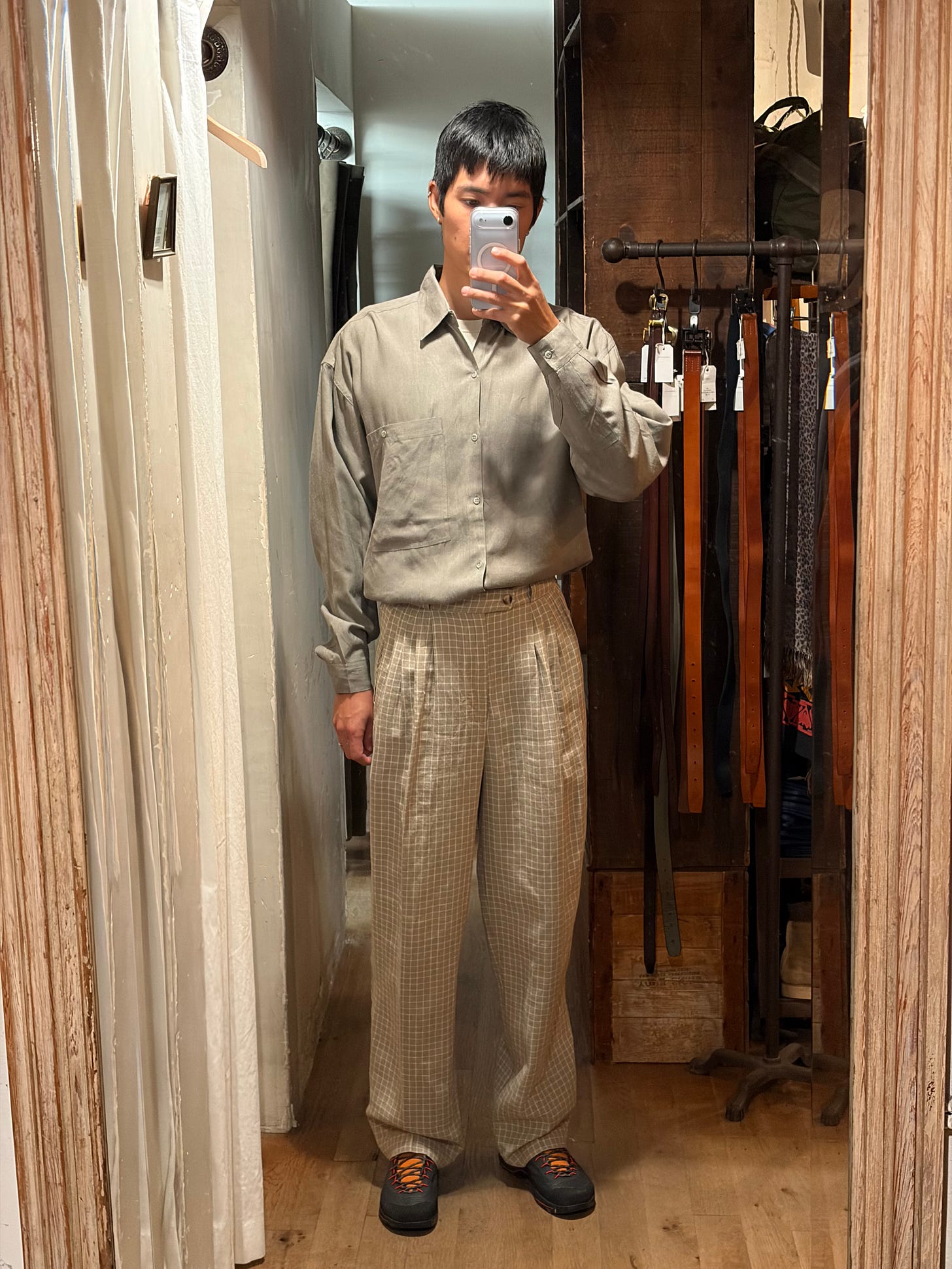 * Michael visited the newly expanded Front General Store in Dumbo this weekend, where he came across a rack of new old-stock Goouch pieces from the ’80s and ’90s that their buyer found abandoned in a warehouse during a sourcing trip in France. The defunct label specialized in Chinese silks with drapey cuts that look like they came off of a Lemaire mood board and colorful pleated Indian linens and rayons that feel like 18 East or Corridor. Most of the collection is available online for around $70.