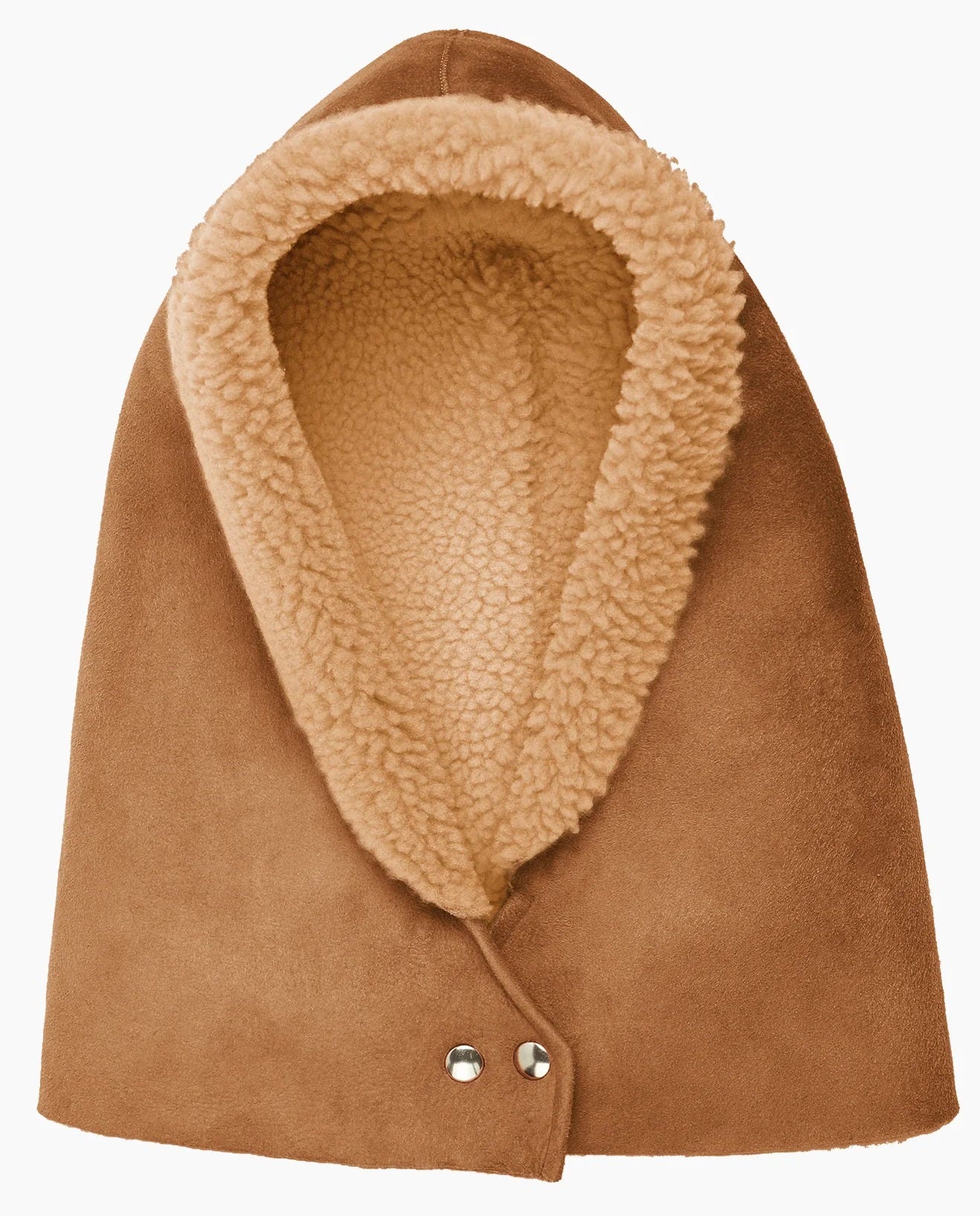 A great shearling hood (also in dark brown).